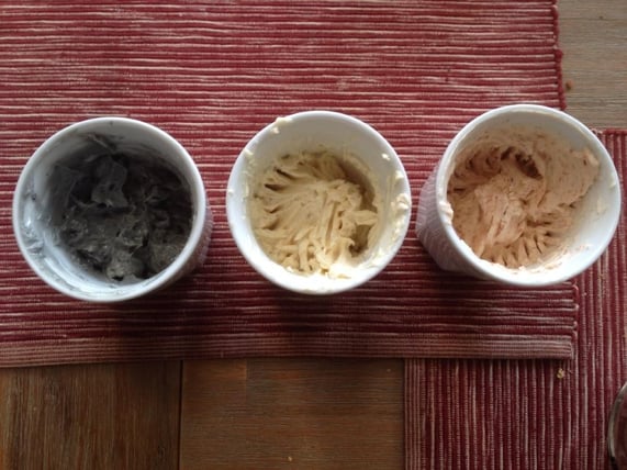 Ein Klassiker zum Buffet, fürs Baguette, zum Dippen... ist neben klassischer Kräuterbutter salzige Butter. Die verschiedenen Varianten sind auf der Basis von Alsan. In der Färbung verhält sie sich anders als herkömmliche Butter (da sich die gelbliche Farbe mit den Farben der Salze vermischt), aber im Geschmack steht sie dem Original in Nichts nach.